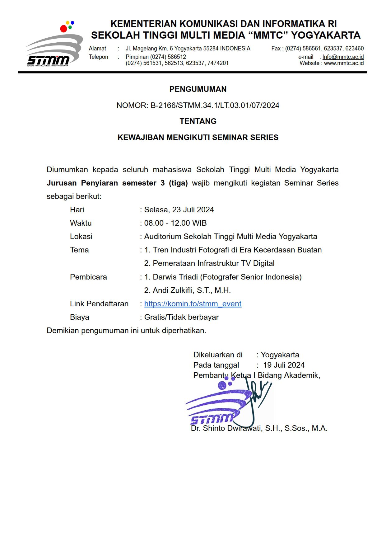 Tidak ada gambar Pengumuman Mahasiswa PENGUMUMAN RENCANA KEWAJIBAN BAGI MAHASISWA STMM MEMILIKI SERTIFIKASI KOMPETENSI DAN KELULUSAN PELATIHAN