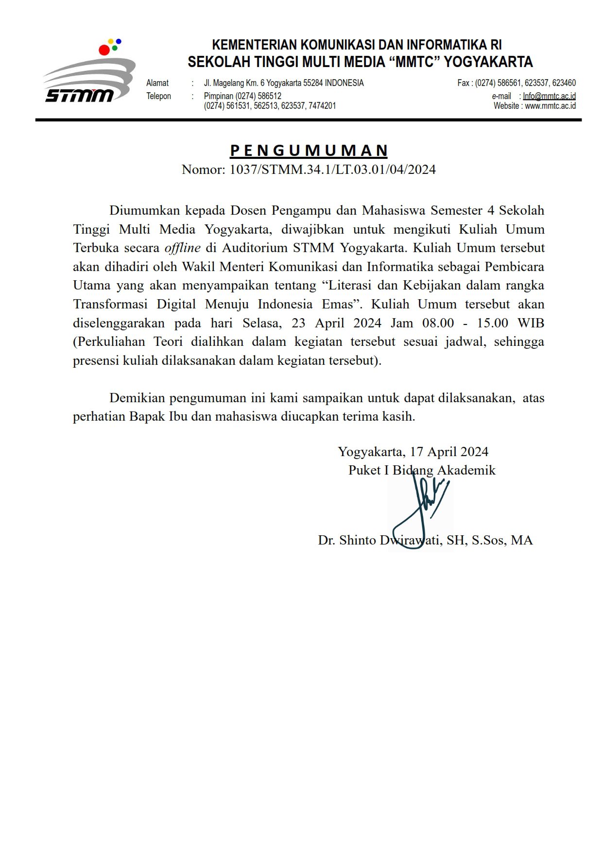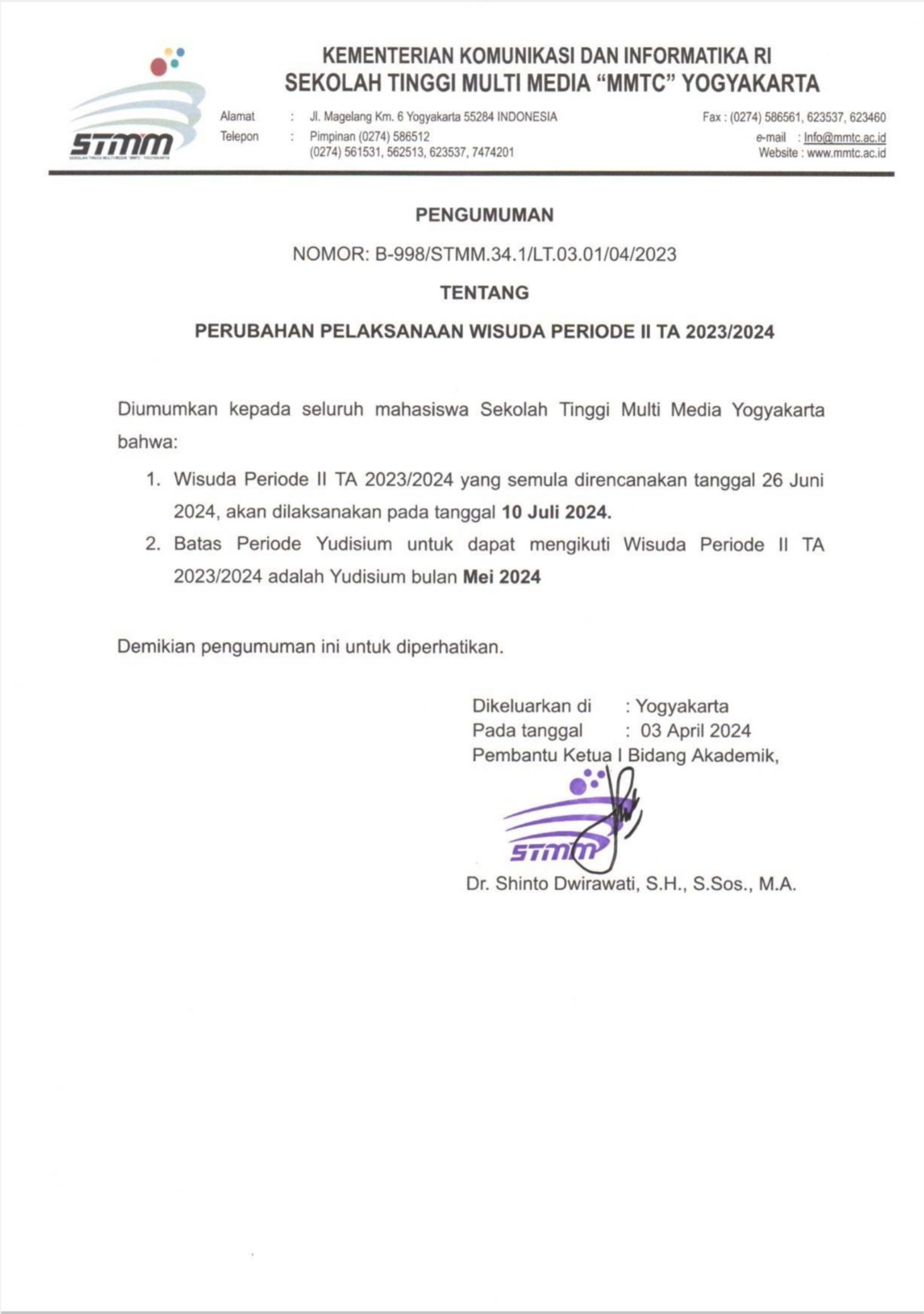 Tidak ada gambar Pengumuman Mahasiswa Pengumuman Penerima Pengenaan Tarif Rp0,00 dan 50% TA 2023/2024 Genap