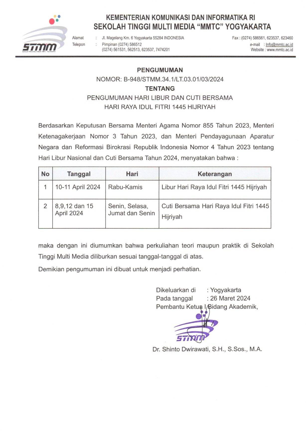 Tidak ada gambar Pengumuman Umum Pengumuman Penerimaan Penghuni Asrama Mahasiswa Sekolah Tinggi Multi Media Tahun 2026