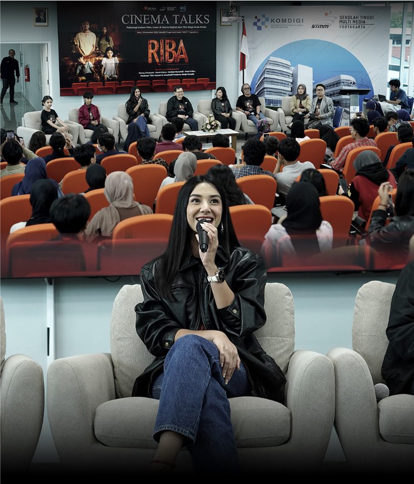 Yogyakarta, 12 November 2025 – Sekolah Tinggi Multi Media (STMM) bekerjasama dengan Verona Films selenggarakan Cinema Talks dengan tema “Psikologi dalam Film, Cuan di Dunia Digital, dan Film bagi Anak Muda” pada Rabu, 12 November 2025 di Theater Room Lantai 3 GTD STMM. Cinema Talks menghadirkan pemain film Riba yaitu Fanny Ghassani, Pritt Timothy, Emilat Morshedi, Kevin Danu, Putri Erika, serta produser Verona Films, Titin Suryani dan Bedy Kunady.