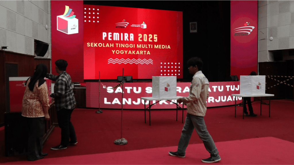 Yogyakarta, 17 Februari 2025 – Komisi Pemilihan Umum Mahasiswa (KPUM) STMM sukses selenggarakan Pemungutan Suara Terbuka Sekolah Tinggi Multi Media (PEMIRA STMM) 2025 yang diikuti ribuan mahasiswa dari tiga jurusan. PEMIRA telah dilaksanakan pada hari Senin, 17 Februari 2025. PEMIRA yang berlangsung di Auditorium STMM merupakan kesempatan bagi seluruh mahasiswa aktif STMM untuk memilih Presiden dan wakil Presiden Badan Eksekutif Mahasiswa (BEM) serta Ketua Himpunan Mahasiswa (HIMA).