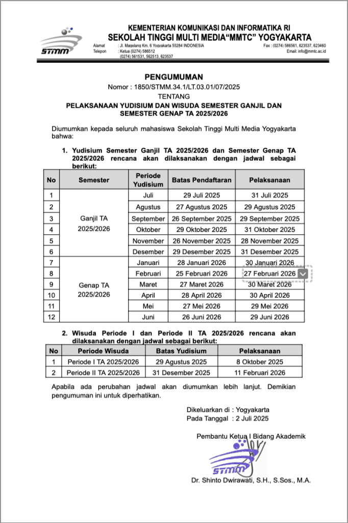 Pengumuman Jadwal Pelaksanaan Yudisium dan Wisuda TA 2025/2026