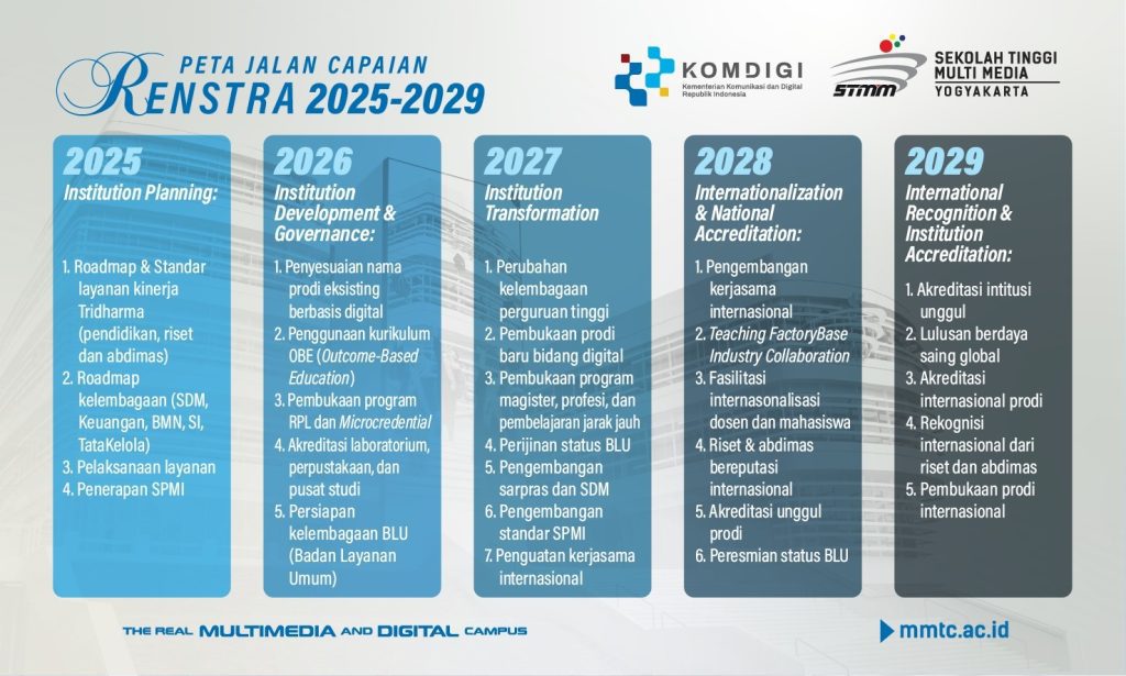 VISI Mewujudkan perguruan tinggi multimedia dan digital yang unggul, inovatif, dan berdampak serta berjiwa Pancasila, bertata kelola mandiri dan fleksibel di tahun 2029