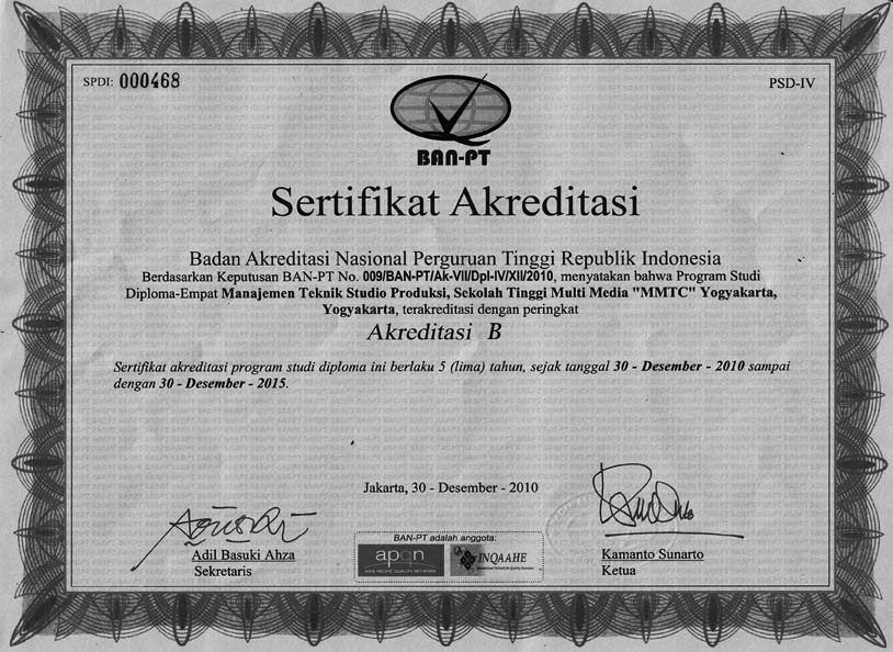 4. Scan fotocopy sertifikat Akreditasi Animasi