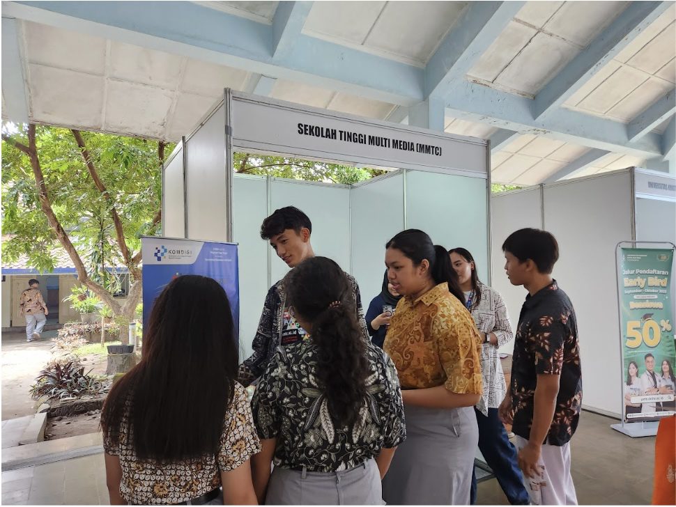 STMM menempati stand di pendopo sekolah dengan menampilkan profil kampus, program studi, serta fasilitas pembelajaran, termasuk studio televisi, studio radio, dan laboratorium digital. Selain itu, karya mahasiswa juga dipamerkan sebagai bentuk kreativitas dan kompetensi lulusan STMM. Salah satu yang menjadi daya tarik utama siswa adalah film animasi berjudul “Ikan Mas Tur Dedari” karya Adhistya, mahasiswa Prodi Animasi STMM.